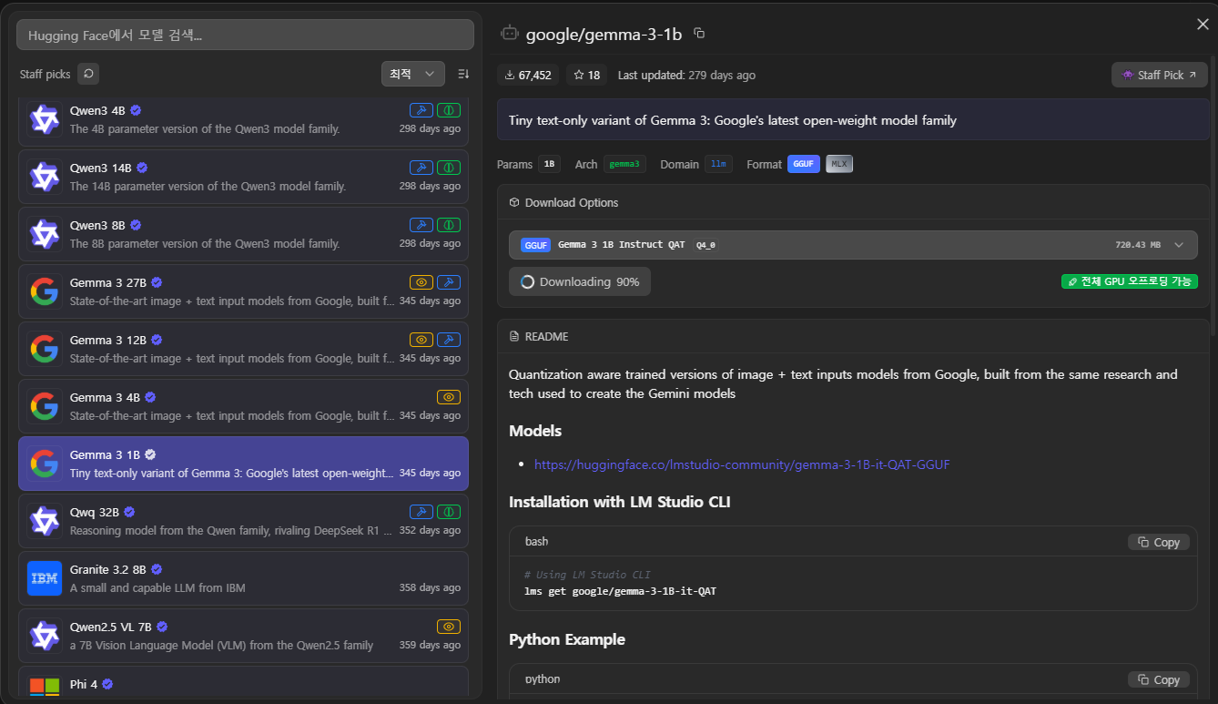 테스트 할 모델은 google에서 만든 gemma-3 1b 모델로 진행하려고 한다.